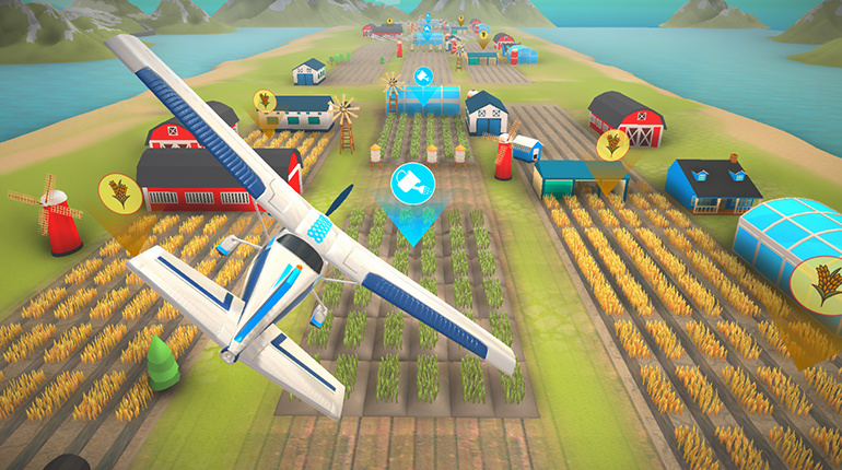 airborne. Navigate through unique farm environments, dodge obstacles, and spray crops to reset the